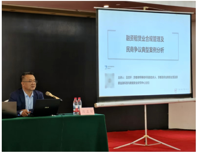2025年5月16日,北京市京都律师事务所高级合伙人吕志轩律师受北京市租赁协会邀请,为协会会员单位进行了一场主题为“融资租赁业合规管理及民商争议典型案例分析”的法律合规业务培训。此次活动由北京市租赁行业协会主办,旨在帮助融资租赁企业进行合规管理,提升业务水平,促进融资租赁行业高质量发展。