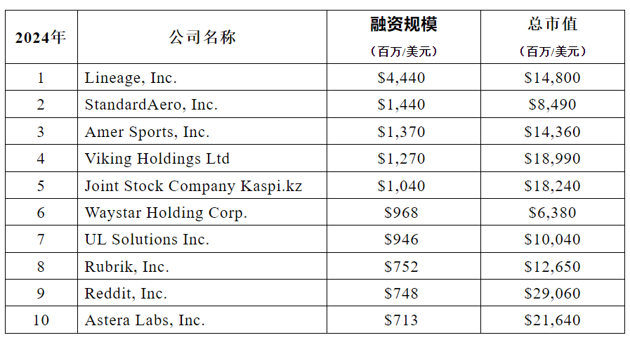 2024年是自2021年达到募资规模3166亿美元峰值以来美国首次公开募股活动最好的一年,也是时隔几年后美国取代中国重回全球IPO市场募资规模第一。