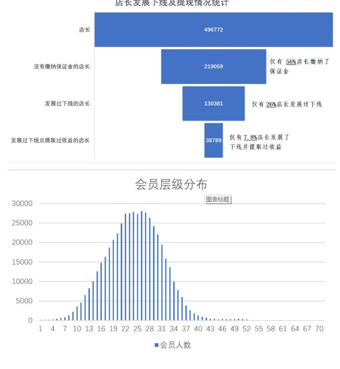另一例由我在河南办理的网络传销案件同样体现了数据深度分析的价值。该平台拥有51万余会员,公诉方指控属于传销组织。问题的核心在于区分消费与传销动机:普通消费者购物以使用为目的,而传销参与者则是为获取发展下线的资格以赚取返利。经多次申请,我们最终获取了全部涉案数据,通过技术分析发现:虽然平台中有49万人具有“店长”身份(被指控为传销架构角色),但其中仅7.8%的实际发展过下线并获取收益。从统计学角度看,当某平台被定义为传销组织时,其多数参与者应具有发展下线的行为特征。而7.8%的极低比例显然不符合这一模式,有力地质疑了将整个平台定性为传销组织的指控依据。我们在庭审中通过数据图表直观呈现这一分析,取得了良好的效果。