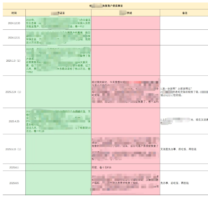 直至2025年4月18日,该协调员因涉案被刑事拘留。值得注意的是,拘留决定书载明其于当晚9时正式被告知拘留措施,而当日做笔录的时间是中午12时至傍晚6时,在此次笔录中他仍维持原有陈述,否认曾向项目经理汇报。然而,在被采取刑事强制措施后,其于4月21日所作的笔录出现重大转变,改称“经回忆,确曾向项目经理汇报”。此证言变化在时间上存在显著关联:在面临刑事追责的压力下,其陈述发生根本性逆转。随后在4月25日再次询问中,其重申改口后内容,4月27日,协调员被取保候审。