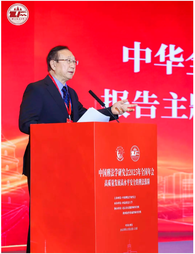 11月22日至23日,中国刑法学研究会2025年全国年会在西安召开。本届年会由中国刑法学研究会主办,西北政法大学承办。会议深入学习贯彻习近平法治思想,学习贯彻党的二十届四中全会精神和中央全面依法治国工作会议精神,以“高质量发展、高水平安全的刑法保障”为主题,围绕我国刑法学发展中的重大理论和实践问题展开深入研讨。来自国内刑事法学界的专家学者及实务界代表等近五百人出席本届年会。