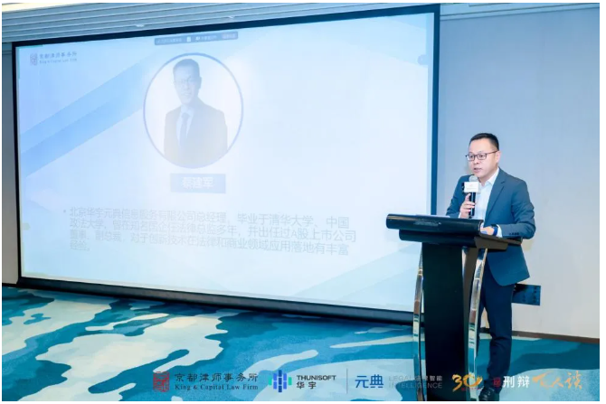 北京华宇元典信息服务有限公司总经理蔡建军介绍了法律AI的产品逻辑与未来构想,强调其产品“amicus”(法律之友)的初心是打造人机协同环境,而非替代法律人。