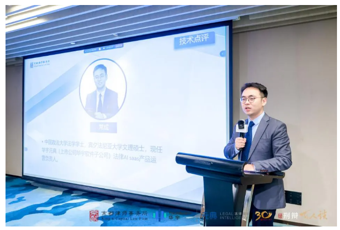 华宇元典法律AI amicus产品负责人常成从技术角度介绍了AI模型的训练逻辑与优化方向,强调AI的核心价值是成为法律人的“专业助手”,通过海量数据整合与精准检索,为律师的专业判断提供支撑。他表示,未来AI将通过个性化知识库搭建,实现与律所、律师的深度协同。
