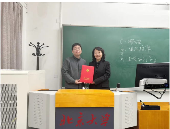 课程最后,车浩教授为梁雅丽律师等三位授课教师颁发北京大学法学院2025年秋季学期《刑事控辩审实务》课程校外授课教师的聘书,并合影留念,为此次实务教学活动画上圆满句号。