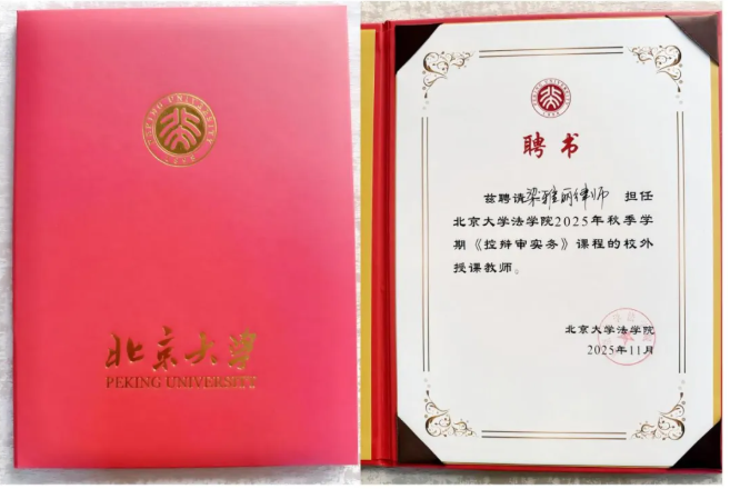 2025年11月25日,北京市京都律师事务所高级合伙人、京都刑事辩护研究中心主任梁雅丽律师应北京大学法学院邀请,走进北京大学法学院,参与《刑事控辩审实务》课程教学,并再次被聘请为校外授课教师。
