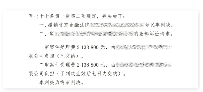 香港某知名集团旗下公司与中国某头部资产管理集团旗下公司信托受益权转让纠纷案,北京金融法院一审判决香港方公司支付4.2亿元逾期付款违约金,公司更面临支付18亿元转让款的法律责任。京都所接受港方十二家公司委托提起上诉,由高级合伙人公丕国律师领衔负责,组成以公丕国、王晓光、朱元霄、刘飞彤律师为诉讼代理人,李明真、白雪莲、张令倩、黄斯琪(实习)律师参加的专案团队。经团队全面代理二审阶段,北京市高级人民法院近日判决,撤销北京金融法院一审判决,驳回对方全部诉讼请求,两审诉讼费计400余万元由对方承担。