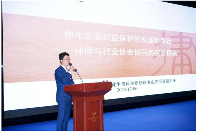 北京市京都律师事务所金毅律师受邀参会,以《中小企业权益保护的反垄断路径——律师与行业协会协同的实务探索》为题发表主题发言,与业界同仁共探竞争法律实务热点。