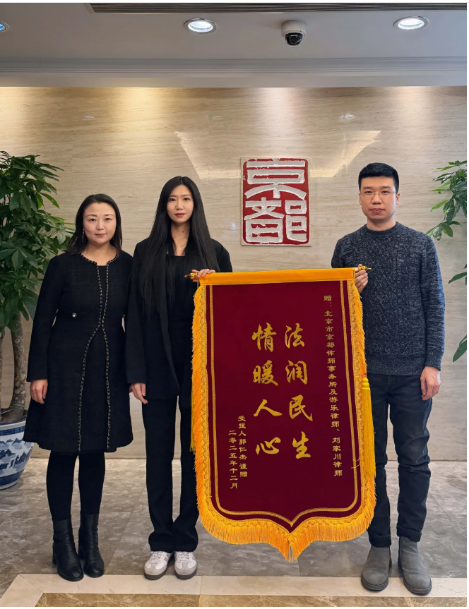最终,四起案件原告的诉讼请求全部被驳回。收到判决书后,委托人特意制作锦旗,赴京都所当面赠予游乐、刘家川二位律师,以表达对律师工作的认可与感谢。游乐、刘家川二位律师表示,将继续秉持追求卓越、不负重托的精神,为当事人提供专业、全面的法律服务。