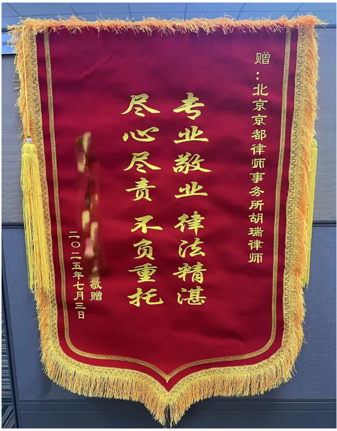 案件办结后,当事人及家属专程送来锦旗,上书“专业敬业,律法精湛;尽心尽责,不负重托”。这十六字不仅是对律师专业服务与尽责态度的高度认可,更彰显了刑辩律师维护当事人合法权益的职业价值。