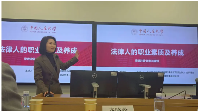 2025年12月24日,北京市京都律师事务所高级合伙人齐晓伶律师受邀走进中国人民大学通州校区,在中国人民大学刑事法律科学研究中心主任时延安教授的主持下,以“法律人的职业素质及养成”为主题,为法学院硕士研究生开展专题讲座,与优秀的法学学子面对面交流,分享执业经验与职业感悟。