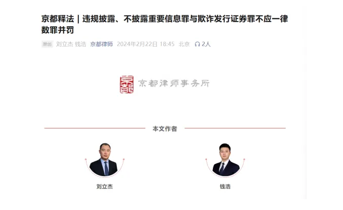 1.《京都释法|违规披露、不披露重要信息罪与欺诈发行证券罪不应一律数罪并罚》